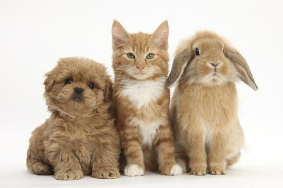 Peekapoo Pekingese X Poodle Puppy Ginger Kitten And Sandy Lop Rabbit Sitting Together Photographic Print Mark Taylor Allposters Com